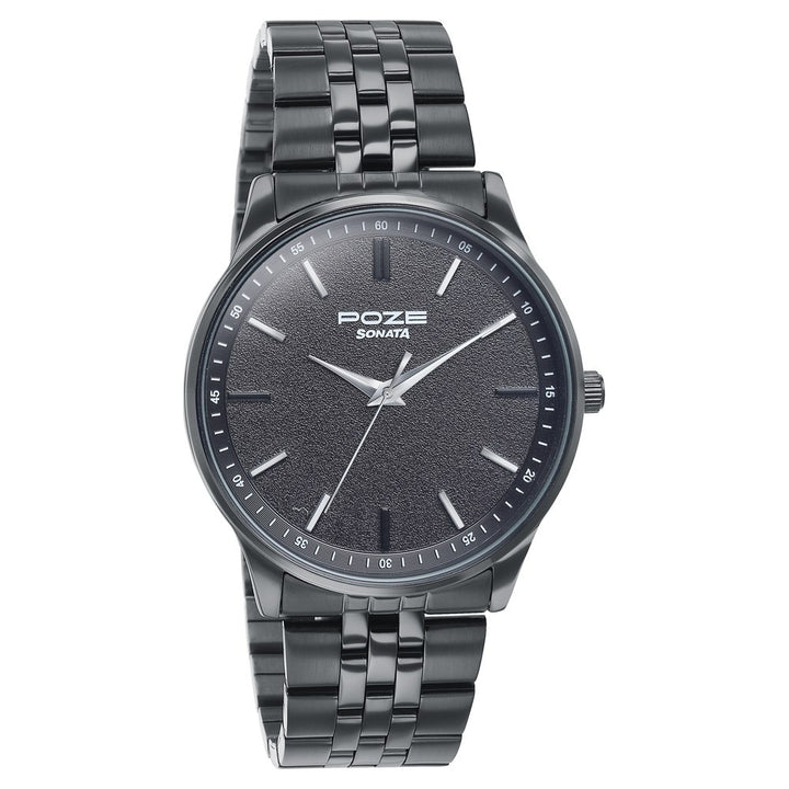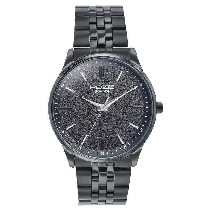 Sonata Poze Quartz Analog Black Round Dial Watch For Men offers a stylish and durable design crafted with a solid stainless steel strap and precise quartz movement. With a sleek black finish and round metal case, this timepiece ensures long-lasting performance and a premium look suitable for both daily wear and special occasions.