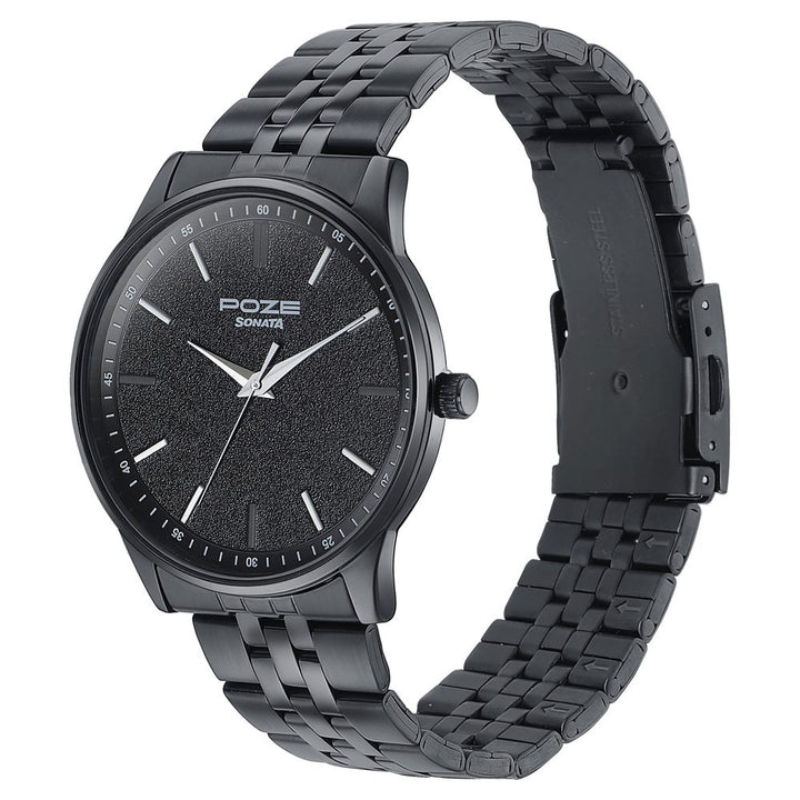 Sonata Poze Quartz Analog Black Round Dial Black Stainless Steel Strap Watch For Men