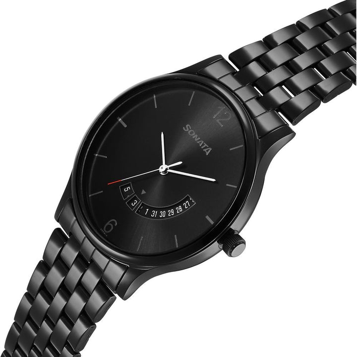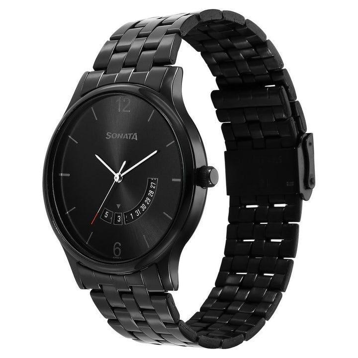 Sonata Quartz Analog with Date Black Dial Watch for Men offers a classic design paired with everyday functionality. Featuring precise quartz movement and a durable stainless-steel strap, this timepiece delivers reliable performance with a sleek modern look. Perfect for both casual wear and formal occasions.