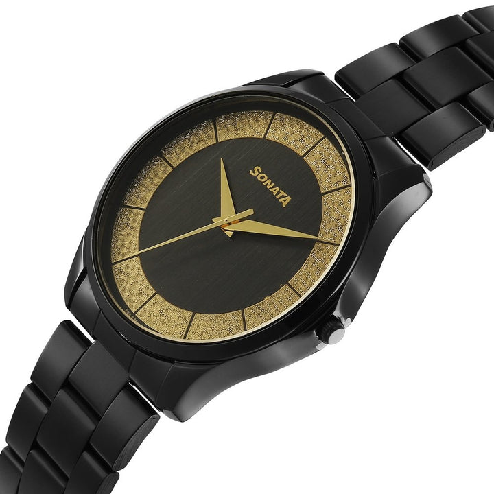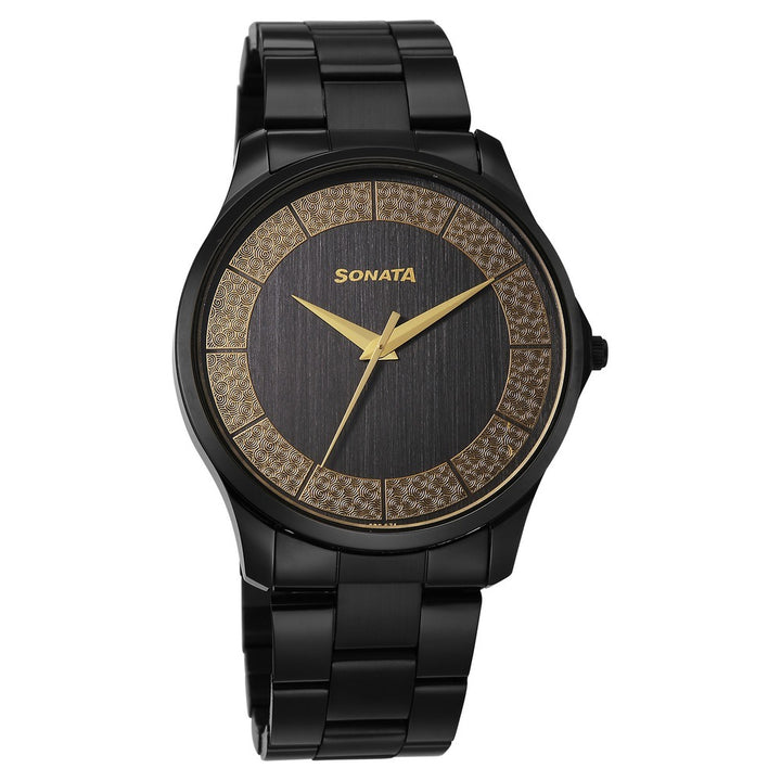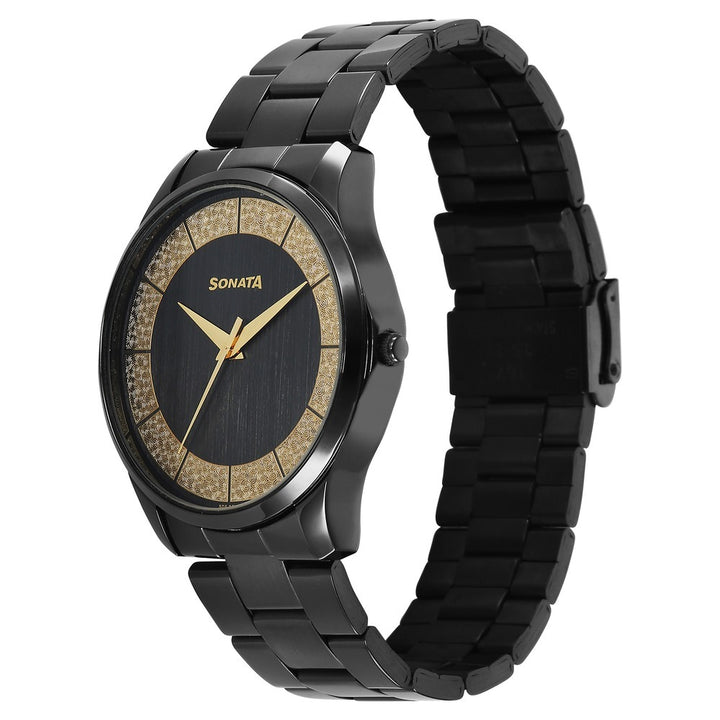 Sonata Traditional Essentials Quartz Analog Multicoloured Dial Black Metal Strap Watch For Men