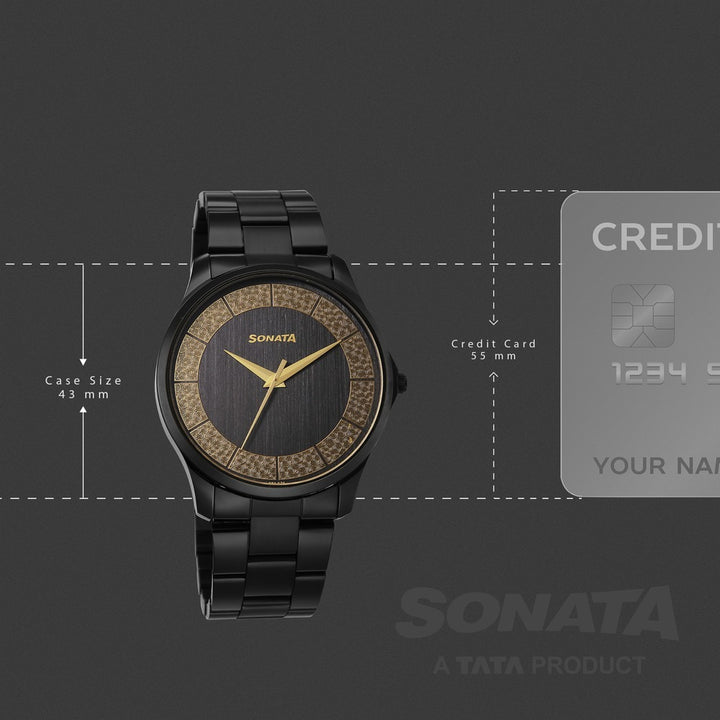 | Name | Sonata Traditional Essentials Quartz Analog Multicoloured Dial Black Metal Strap Watch For Men | Case Shape | Round |