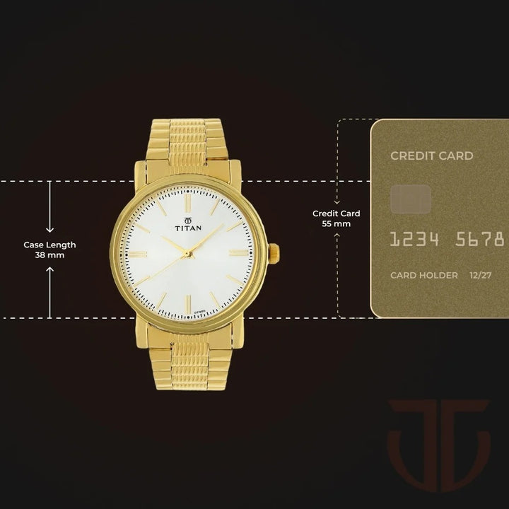 Titan Quartz Analog Silver Dial Golden Stainless-Steel Strap Watch For Men offers a premium and classy design suitable for formal and everyday styling. Featuring precise quartz movement, durable metal casing, and a sleek stainless-steel strap, this timepiece ensures reliable performance with long-lasting elegance.