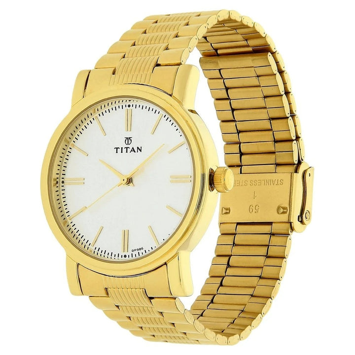 Titan Quartz Analog Silver Dial Golden Stainless Steel Strap Watch For Men